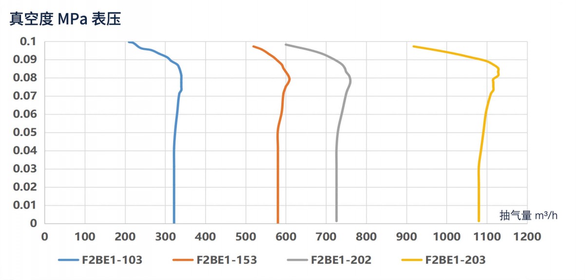 可滿足246~1380m3/h的中高抽氣量區(qū)間,其限度真空度也更高。