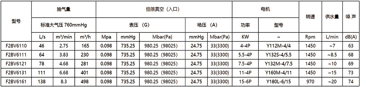 3.抽氣速率、軸功率性能允差10%。